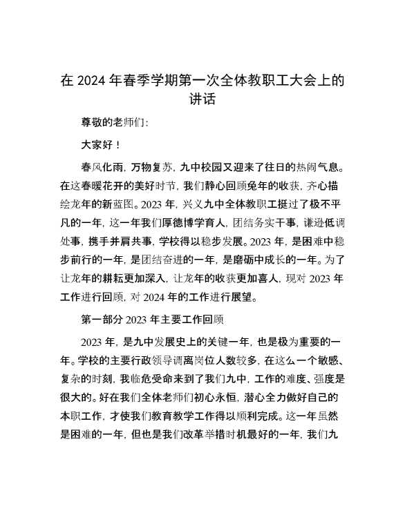 在2024年春季学期第一次全体教职工大会上的讲话 2024-03-04 Word模板 96 购买前,请一定要先点击这里看看,欢迎持续关注,精彩模板每天推送 预览结束,本文件为word文档,一共10页,共4232字,请购买后,下载后查看 购买前,请一定要先点击这里看看,欢迎持续关注,精彩模板每天推送 资源下载下载价格29 RMBVIP免费升级VIP点击检测网盘有效后购买有任何充值和下载问题请加微信:xuexixuexi66 0 演讲发言