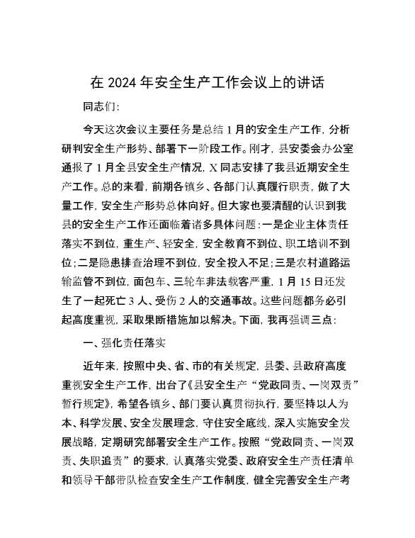 在2024年安全生产工作会议上的讲话 2024-03-04 Word模板 97 购买前,请一定要先点击这里看看,欢迎持续关注,精彩模板每天推送 预览结束,本文件为word文档,一共4页,共1598字,请购买后,下载后查看 购买前,请一定要先点击这里看看,欢迎持续关注,精彩模板每天推送 资源下载下载价格29 RMBVIP免费升级VIP点击检测网盘有效后购买有任何充值和下载问题请加微信:xuexixuexi66 0 演讲发言