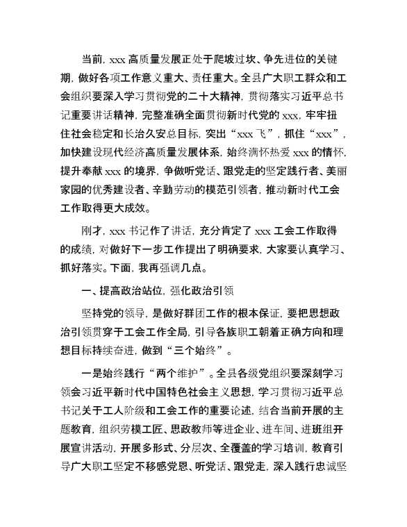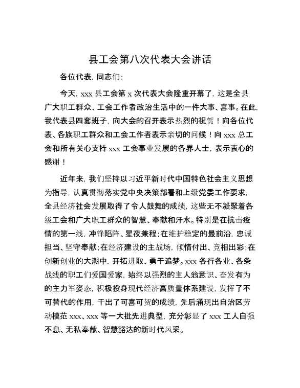 县工会第八次代表大会讲话 2024-03-04 Word模板 94 购买前,请一定要先点击这里看看,欢迎持续关注,精彩模板每天推送 预览结束,本文件为word文档,一共8页,共3681字,请购买后,下载后查看 购买前,请一定要先点击这里看看,欢迎持续关注,精彩模板每天推送 资源下载下载价格29 RMBVIP免费升级VIP点击检测网盘有效后购买有任何充值和下载问题请加微信:xuexixuexi66 0 演讲发言