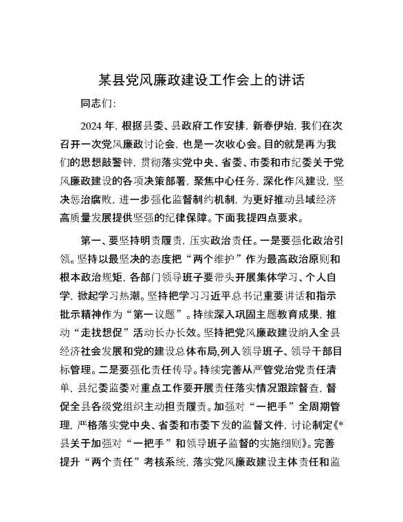 某县党风廉政建设工作会上的讲话 2024-03-04 Word模板 97 购买前,请一定要先点击这里看看,欢迎持续关注,精彩模板每天推送 预览结束,本文件为word文档,一共4页,共1888字,请购买后,下载后查看 购买前,请一定要先点击这里看看,欢迎持续关注,精彩模板每天推送 资源下载下载价格29 RMBVIP免费升级VIP点击检测网盘有效后购买有任何充值和下载问题请加微信:xuexixuexi66 0 演讲发言