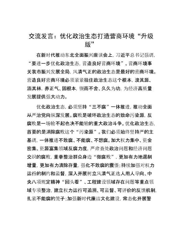 交流发言:优化政治生态打造营商环境“升级版” 2024-03-04 Word模板 94 购买前,请一定要先点击这里看看,欢迎持续关注,精彩模板每天推送 预览结束,本文件为word文档,一共4页,共1997字,请购买后,下载后查看 购买前,请一定要先点击这里看看,欢迎持续关注,精彩模板每天推送 资源下载下载价格29 RMBVIP免费升级VIP点击检测网盘有效后购买有任何充值和下载问题请加微信:xuexixuexi66 0 演讲发言