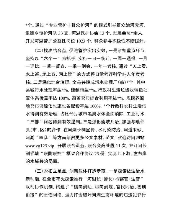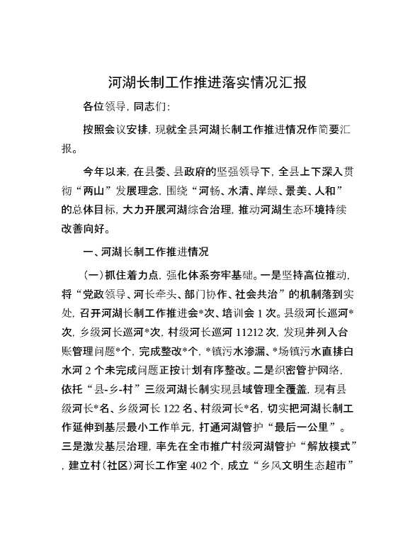 河湖长制工作推进落实情况汇报 2024-03-06 Word模板 133 购买前,请一定要先点击这里看看,欢迎持续关注,精彩模板每天推送 预览结束,本文件为word文档,一共4页,共1600字,请购买后,下载后查看 购买前,请一定要先点击这里看看,欢迎持续关注,精彩模板每天推送 资源下载下载价格29 RMBVIP免费升级VIP点击检测网盘有效后购买有任何充值和下载问题请加微信:xuexixuexi66 0 总结汇报