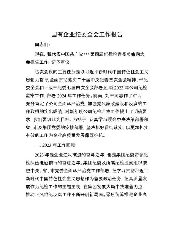 国有企业纪委全会工作报告 2024-03-06 Word模板 121 购买前,请一定要先点击这里看看,欢迎持续关注,精彩模板每天推送 预览结束,本文件为word文档,一共15页,共7445字,请购买后,下载后查看 购买前,请一定要先点击这里看看,欢迎持续关注,精彩模板每天推送 资源下载下载价格29 RMBVIP免费升级VIP点击检测网盘有效后购买有任何充值和下载问题请加微信:xuexixuexi66 0 总结汇报