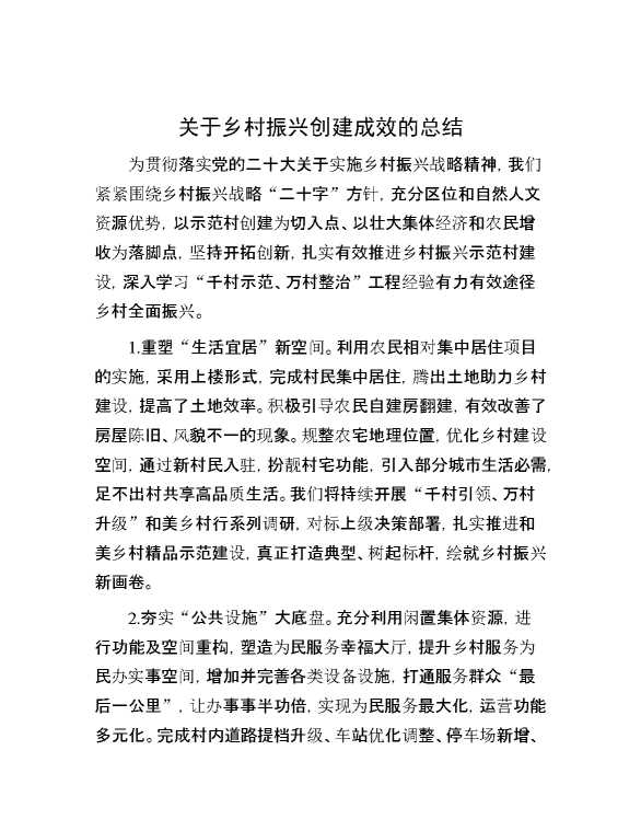 关于乡村振兴创建成效的总结 2024-03-06 Word模板 138 购买前,请一定要先点击这里看看,欢迎持续关注,精彩模板每天推送 预览结束,本文件为word文档,一共3页,共1326字,请购买后,下载后查看 购买前,请一定要先点击这里看看,欢迎持续关注,精彩模板每天推送 资源下载下载价格29 RMBVIP免费升级VIP点击检测网盘有效后购买有任何充值和下载问题请加微信:xuexixuexi66 0 总结汇报
