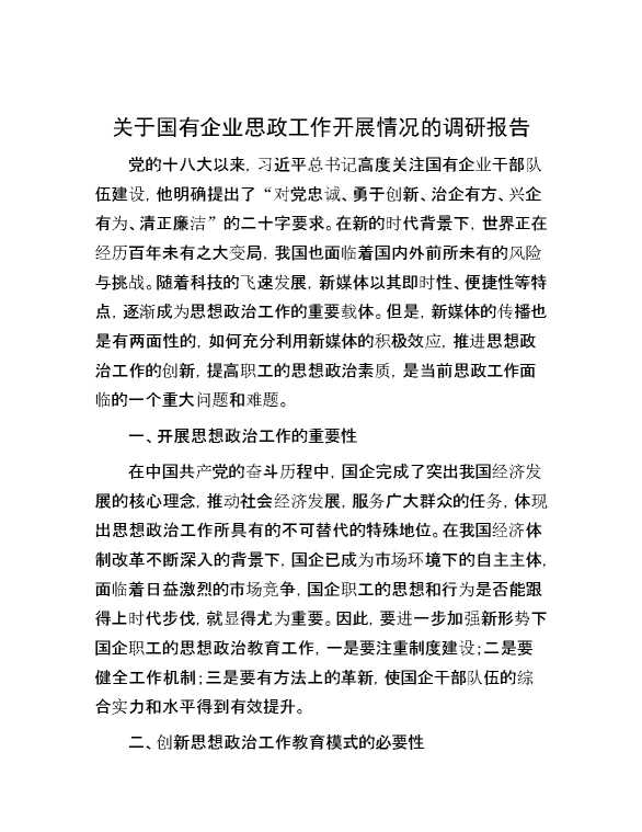 关于国有企业思政工作开展情况的调研报告 2024-03-06 Word模板 137 购买前,请一定要先点击这里看看,欢迎持续关注,精彩模板每天推送 预览结束,本文件为word文档,一共6页,共2834字,请购买后,下载后查看 购买前,请一定要先点击这里看看,欢迎持续关注,精彩模板每天推送 资源下载下载价格29 RMBVIP免费升级VIP点击检测网盘有效后购买有任何充值和下载问题请加微信:xuexixuexi66 0 总结汇报