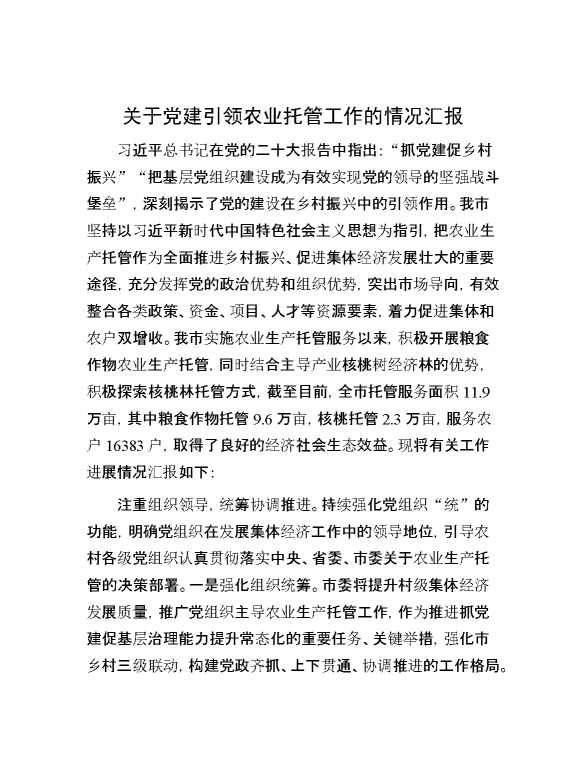关于党建引领农业托管工作的情况汇报 2024-03-06 Word模板 127 购买前,请一定要先点击这里看看,欢迎持续关注,精彩模板每天推送 预览结束,本文件为word文档,一共6页,共3195字,请购买后,下载后查看 购买前,请一定要先点击这里看看,欢迎持续关注,精彩模板每天推送 资源下载下载价格29 RMBVIP免费升级VIP点击检测网盘有效后购买有任何充值和下载问题请加微信:xuexixuexi66 0 总结汇报