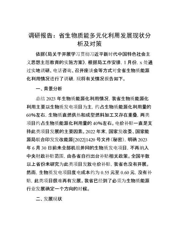 调研报告:省生物质能多元化利用发展现状分析及对策 2024-03-06 Word模板 116 购买前,请一定要先点击这里看看,欢迎持续关注,精彩模板每天推送 预览结束,本文件为word文档,一共4页,共1794字,请购买后,下载后查看 购买前,请一定要先点击这里看看,欢迎持续关注,精彩模板每天推送 资源下载下载价格29 RMBVIP免费升级VIP点击检测网盘有效后购买有任何充值和下载问题请加微信:xuexixuexi66 0 总结汇报