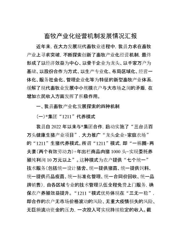 畜牧产业化经营机制发展情况汇报 2024-03-06 Word模板 122 购买前,请一定要先点击这里看看,欢迎持续关注,精彩模板每天推送 预览结束,本文件为word文档,一共6页,共2575字,请购买后,下载后查看 购买前,请一定要先点击这里看看,欢迎持续关注,精彩模板每天推送 资源下载下载价格29 RMBVIP免费升级VIP点击检测网盘有效后购买有任何充值和下载问题请加微信:xuexixuexi66 0 总结汇报