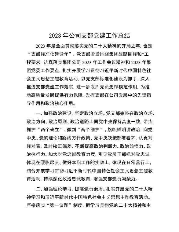 2023年公司支部党建工作总结 2024-03-06 Word模板 128 购买前,请一定要先点击这里看看,欢迎持续关注,精彩模板每天推送 预览结束,本文件为word文档,一共6页,共2827字,请购买后,下载后查看 购买前,请一定要先点击这里看看,欢迎持续关注,精彩模板每天推送 资源下载下载价格29 RMBVIP免费升级VIP点击检测网盘有效后购买有任何充值和下载问题请加微信:xuexixuexi66 0 总结汇报