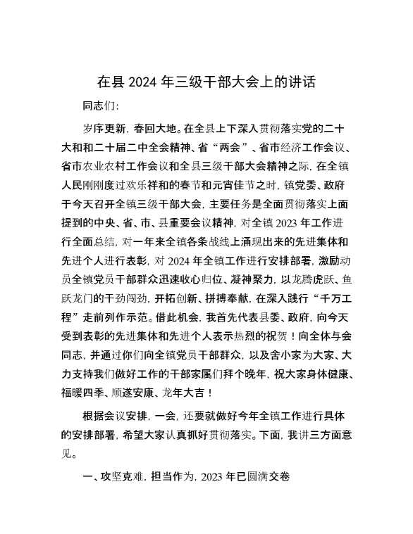 在县2024年三级干部大会上的讲话 2024-03-06 Word模板 112 购买前,请一定要先点击这里看看,欢迎持续关注,精彩模板每天推送 预览结束,本文件为word文档,一共13页,共6277字,请购买后,下载后查看 购买前,请一定要先点击这里看看,欢迎持续关注,精彩模板每天推送 资源下载下载价格29 RMBVIP免费升级VIP点击检测网盘有效后购买有任何充值和下载问题请加微信:xuexixuexi66 0 演讲发言