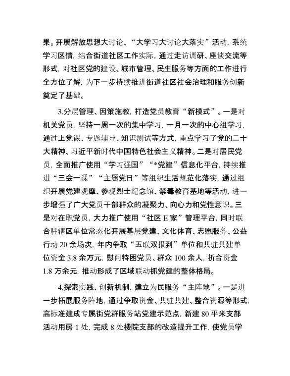 街道党工委书记抓基层党建述职报告 2024-03-10 Word模板 102 购买前,请一定要先点击这里看看,欢迎持续关注,精彩模板每天推送 预览结束,本文件为word文档,一共7页,共3082字,请购买后,下载后查看 购买前,请一定要先点击这里看看,欢迎持续关注,精彩模板每天推送 资源下载下载价格29 RMBVIP免费升级VIP点击检测网盘有效后购买有任何充值和下载问题请加微信:xuexixuexi66 0 总结汇报