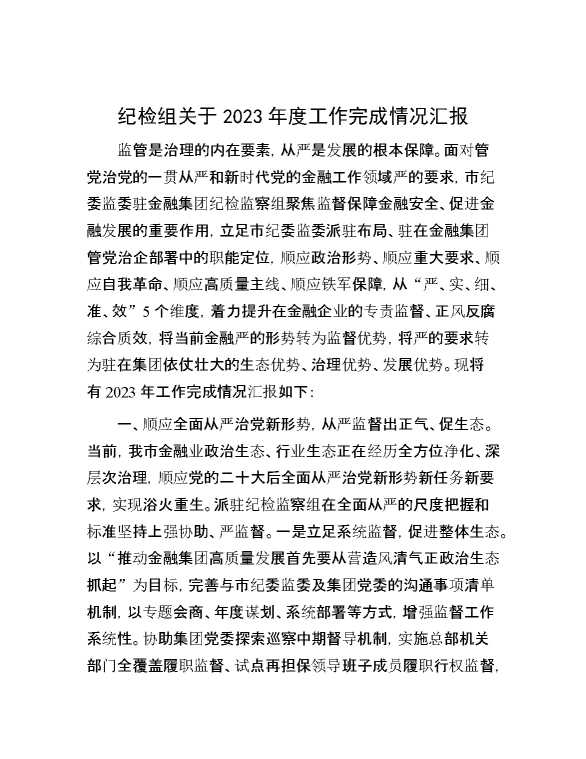 纪检组关于2023年度工作完成情况汇报 2024-03-10 Word模板 102 购买前,请一定要先点击这里看看,欢迎持续关注,精彩模板每天推送 预览结束,本文件为word文档,一共6页,共3125字,请购买后,下载后查看 购买前,请一定要先点击这里看看,欢迎持续关注,精彩模板每天推送 资源下载下载价格29 RMBVIP免费升级VIP点击检测网盘有效后购买有任何充值和下载问题请加微信:xuexixuexi66 0 总结汇报