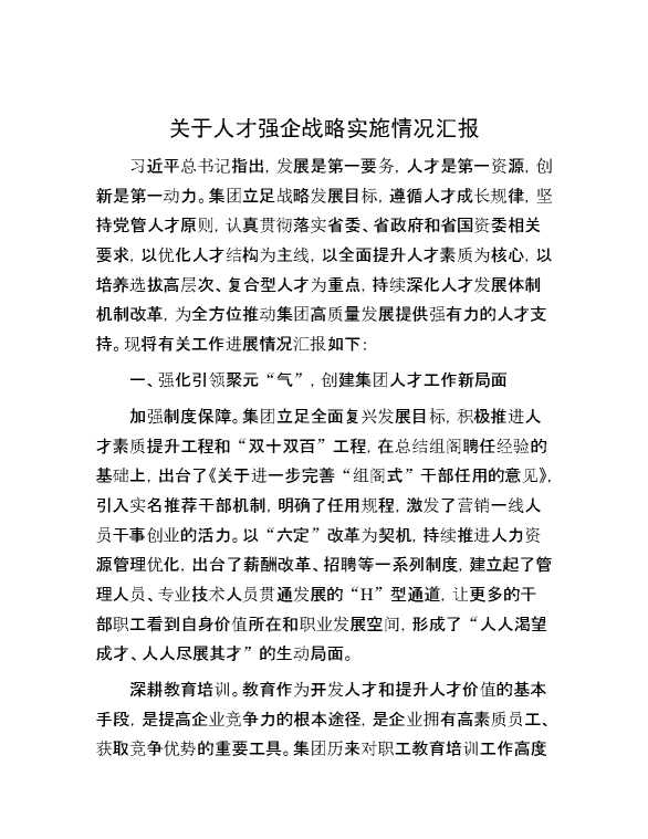 关于人才强企战略实施情况汇报 2024-03-10 Word模板 117 购买前,请一定要先点击这里看看,欢迎持续关注,精彩模板每天推送 预览结束,本文件为word文档,一共7页,共3086字,请购买后,下载后查看 购买前,请一定要先点击这里看看,欢迎持续关注,精彩模板每天推送 资源下载下载价格29 RMBVIP免费升级VIP点击检测网盘有效后购买有任何充值和下载问题请加微信:xuexixuexi66 0 总结汇报
