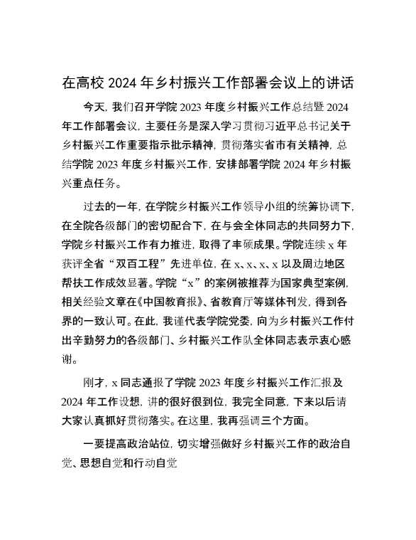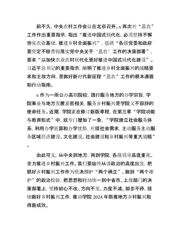在高校2024年乡村振兴工作部署会议上的讲话 2024-03-10 Word模板 109 购买前,请一定要先点击这里看看,欢迎持续关注,精彩模板每天推送 预览结束,本文件为word文档,一共5页,共2261字,请购买后,下载后查看 购买前,请一定要先点击这里看看,欢迎持续关注,精彩模板每天推送 资源下载下载价格29 RMBVIP免费升级VIP点击检测网盘有效后购买有任何充值和下载问题请加微信:xuexixuexi66 0 演讲发言
