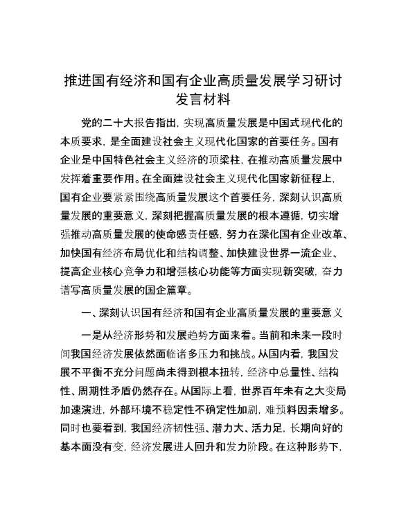 推进国有经济和国有企业高质量发展学习研讨发言材料 2024-03-10 Word模板 109 购买前,请一定要先点击这里看看,欢迎持续关注,精彩模板每天推送 预览结束,本文件为word文档,一共6页,共2846字,请购买后,下载后查看 购买前,请一定要先点击这里看看,欢迎持续关注,精彩模板每天推送 资源下载下载价格29 RMBVIP免费升级VIP点击检测网盘有效后购买有任何充值和下载问题请加微信:xuexixuexi66 0 演讲发言