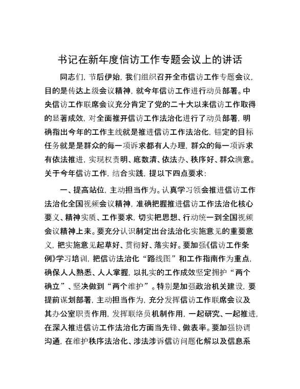 书记在新年度信访工作专题会议上的讲话 2024-03-10 Word模板 114 购买前,请一定要先点击这里看看,欢迎持续关注,精彩模板每天推送 预览结束,本文件为word文档,一共4页,共1728字,请购买后,下载后查看 购买前,请一定要先点击这里看看,欢迎持续关注,精彩模板每天推送 资源下载下载价格29 RMBVIP免费升级VIP点击检测网盘有效后购买有任何充值和下载问题请加微信:xuexixuexi66 0 演讲发言
