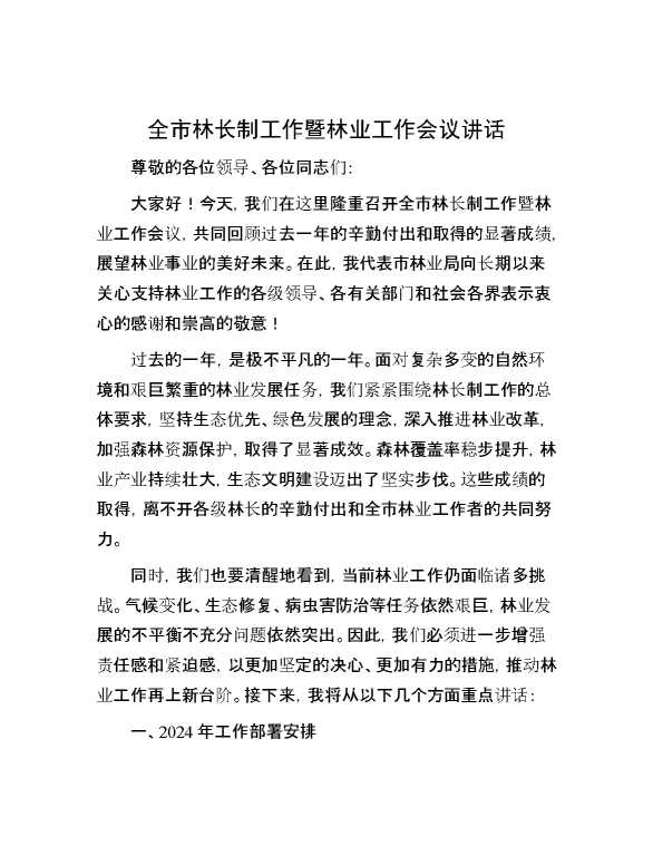 全市林长制工作暨林业工作会议讲话 2024-03-10 Word模板 103 购买前,请一定要先点击这里看看,欢迎持续关注,精彩模板每天推送 预览结束,本文件为word文档,一共4页,共1433字,请购买后,下载后查看 购买前,请一定要先点击这里看看,欢迎持续关注,精彩模板每天推送 资源下载下载价格29 RMBVIP免费升级VIP点击检测网盘有效后购买有任何充值和下载问题请加微信:xuexixuexi66 0 演讲发言