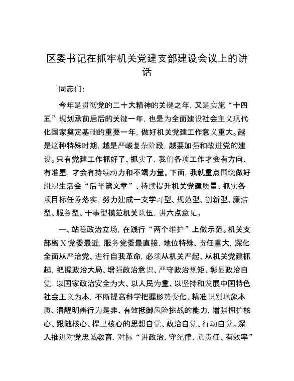 区委书记在抓牢机关党建支部建设会议上的讲话 2024-03-10 Word模板 111 购买前,请一定要先点击这里看看,欢迎持续关注,精彩模板每天推送 预览结束,本文件为word文档,一共6页,共2929字,请购买后,下载后查看 购买前,请一定要先点击这里看看,欢迎持续关注,精彩模板每天推送 资源下载下载价格29 RMBVIP免费升级VIP点击检测网盘有效后购买有任何充值和下载问题请加微信:xuexixuexi66 0 演讲发言