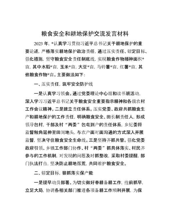 粮食安全和耕地保护交流发言材料 2024-03-10 Word模板 106 购买前,请一定要先点击这里看看,欢迎持续关注,精彩模板每天推送 预览结束,本文件为word文档,一共3页,共1279字,请购买后,下载后查看 购买前,请一定要先点击这里看看,欢迎持续关注,精彩模板每天推送 资源下载下载价格29 RMBVIP免费升级VIP点击检测网盘有效后购买有任何充值和下载问题请加微信:xuexixuexi66 0 演讲发言