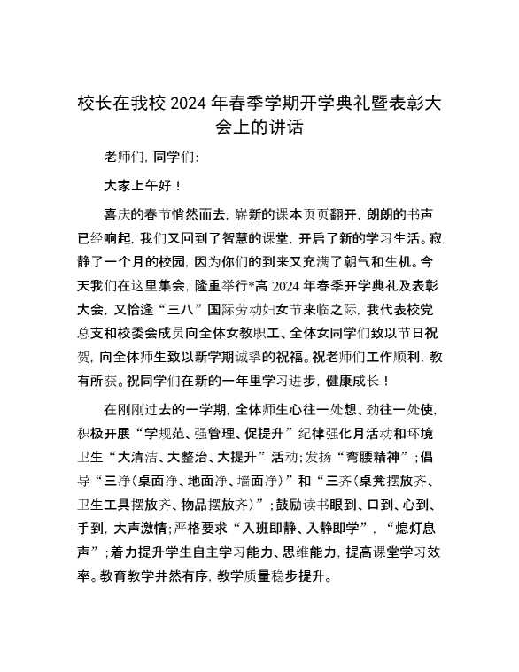 校长在我校2024年春季学期开学典礼暨表彰大会上的讲话 2024-03-17 Word模板 107 购买前,请一定要先点击这里看看,欢迎持续关注,精彩模板每天推送 预览结束,本文件为word文档,一共3页,共1146字,请购买后,下载后查看 购买前,请一定要先点击这里看看,欢迎持续关注,精彩模板每天推送 资源下载下载价格29 RMBVIP免费升级VIP点击检测网盘有效后购买有任何充值和下载问题请加微信:xuexixuexi66 0 演讲发言