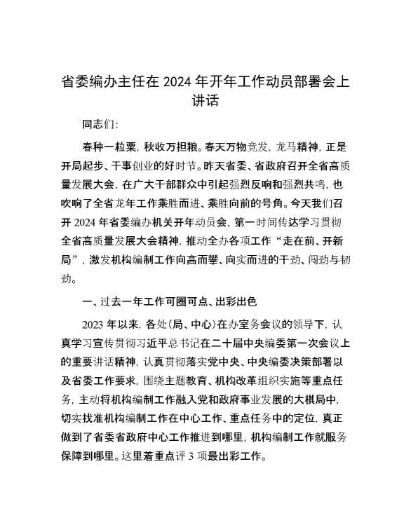 省委编办主任在2024年开年工作动员部署会上讲话 2024-03-17 Word模板 111 购买前,请一定要先点击这里看看,欢迎持续关注,精彩模板每天推送 预览结束,本文件为word文档,一共9页,共4107字,请购买后,下载后查看 购买前,请一定要先点击这里看看,欢迎持续关注,精彩模板每天推送 资源下载下载价格29 RMBVIP免费升级VIP点击检测网盘有效后购买有任何充值和下载问题请加微信:xuexixuexi66 0 演讲发言