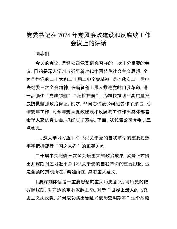 党委书记在2024年党风廉政建设和反腐败工作会议上的讲话 2024-03-17 Word模板 92 购买前,请一定要先点击这里看看,欢迎持续关注,精彩模板每天推送 预览结束,本文件为word文档,一共14页,共6847字,请购买后,下载后查看 购买前,请一定要先点击这里看看,欢迎持续关注,精彩模板每天推送 资源下载下载价格29 RMBVIP免费升级VIP点击检测网盘有效后购买有任何充值和下载问题请加微信:xuexixuexi66 0 演讲发言
