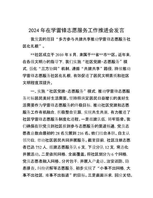 2024年在学雷锋志愿服务工作推进会发言 2024-03-17 Word模板 88 购买前,请一定要先点击这里看看,欢迎持续关注,精彩模板每天推送 预览结束,本文件为word文档,一共4页,共1559字,请购买后,下载后查看 购买前,请一定要先点击这里看看,欢迎持续关注,精彩模板每天推送 资源下载下载价格29 RMBVIP免费升级VIP点击检测网盘有效后购买有任何充值和下载问题请加微信:xuexixuexi66 0 演讲发言